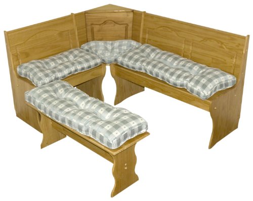 Add a stylish and contemporary Country accent to your breakfast nook furniture with these cushion sets. Overstuffed with 100-Percent soft polyester fill for added comfort, strength and durability.Non Skid Bottom prevents slipping.Finished in USA.Tufted with circle tack construction.Overstuffed construction for extracomfort. Made from 100-Percent Ofelin fabric. Spot clean. Seat Cushion Dimensions Short bench : 27-Inch L by 14-Inch W Long bench : 43-Inch L by 14-Inch W Free standing trestle bench : 40-Inch L by 13-Inch W Center corner : 22-Inch Across Back, 14-Inch Deep (Cushion sizes are + or - 2-Inch ). Matching chairpads also available.