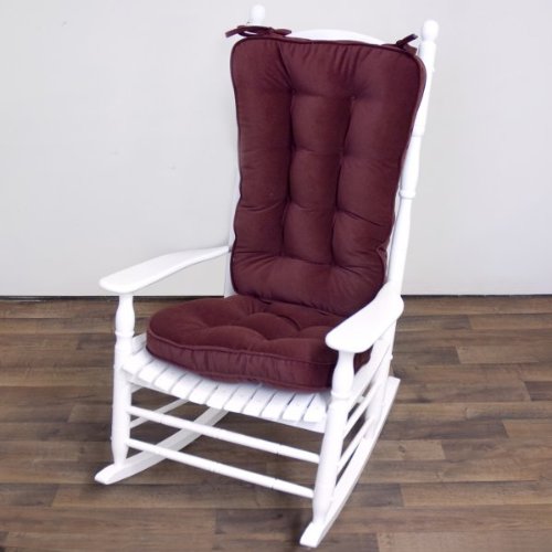 Solid color rocking chair cushion set. 100-Percent nylon microfiber fabric. This rocker cushion set is fully reversible. Set consists of two cushions; 1 seat cushion (18-Inch W by 18-Inch D) and 1 back cushion (18-Inch W by 28-Inch H). Cushion sets are 3-Inch thick. Cushions have a boxed, corded edge trim and 4 circle tacks. String ties are attached to the backs of both cushions. The rocker cushions are fully tufted and filled with 100-Percent polyester fiberfill. Home furnishings for indoor use.· Spot clean only. Made in the USA. (Cushions are + or – 1-1/2-Inch ).......