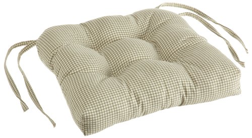 Logan Gingham Check Cushioned Chair Pad - Gingham check print is one of the most popular decorating patterns today. The classic 1/8 small gingham check print creates an updated look and feel to any room. Made with 100-percent cotton outer fabric and polyester fill inside you are sure to get a pad that's beautiful and comfortable in a decorating pattern that's timeless and long lasting. Constructed into the chair pad is a corded edge and string ties to hold it in place. Decorative and functional tufting was added to keep fill from bunching or shifting giving you years of trouble free use and enjoyment. It Measures 15-inch wide, 14-inch long and approximately 3-inch thick. Cushioned chair pads can be combined with coordinating Logan Gingham Check Tailored Tier Curtains and Valences that are also available thru Amazon. Also available are matching Tailored Tier Curtains, Tailored Pair Drape Panels with Tiebacks, 3 Piece Lined Swag Curtain Set, Chair Pads, Throw Pillows, Valences, Bed Skirts/Dust Ruffles, Bed Comforters and Shams. Made in the USA, Dry clean only