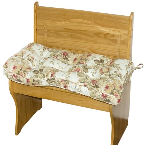 Checked bench cushion. Made from 100-Percent cotton. The cushion has a boxed side panel with a corded edge. String ties attached to back of cushion to help it stay in place. Filled with 100-Percent polyester fiberfill. Spot clean only. Made in the USA. Bench Seat Cushion Dimensions: 34.75-Inch Long (front) tapers to 32-1/2(back) by 16-1/2-Inch Wide by 3-Inch Thick