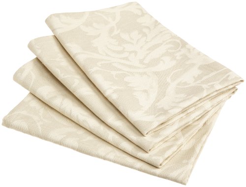 Formal tone-on-tone scroll floral design in ivory is woven throughout this beautiful all-cotton jacquard pattern.