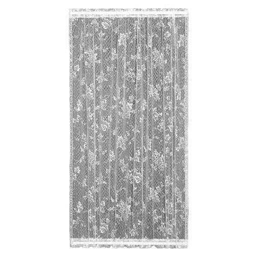 English Ivy 48-inch wide by 36-inch drop White Door Panel has a look of ivy leaves and vines cascade through ornate grillwork and garden gates edged in lace. Includes 1-inch header and 1-1/2-inch rod pocket in the stated dimensions. Length extends from rod pocket to rod pocket and does not include headers in the stated dimensions.